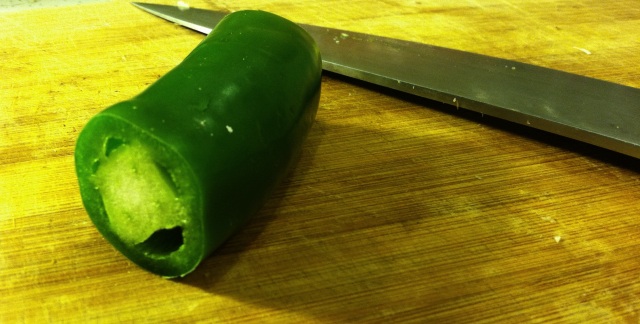 This time, I started by dicing up half a fresh jalapeno.